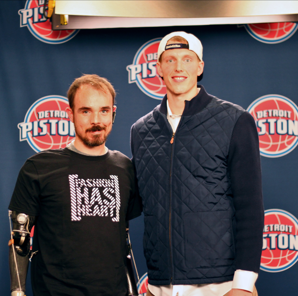 Michael met a wounded U.S. Marine and his full-time nurse at a local veterans event. Paralyzed from the neck down and unable to speak due to injuries sustained in Iraq, the young Marine shared his story through an alphanumeric communication code translated on a clipboard by his full-time nurse. Michael learned of his passion for graphic t-shirts and asked the Marine if he would like to design his own. Seeing the larger-than-life grin come across his face, Michael called Tyler to see if they could design a shirt together.