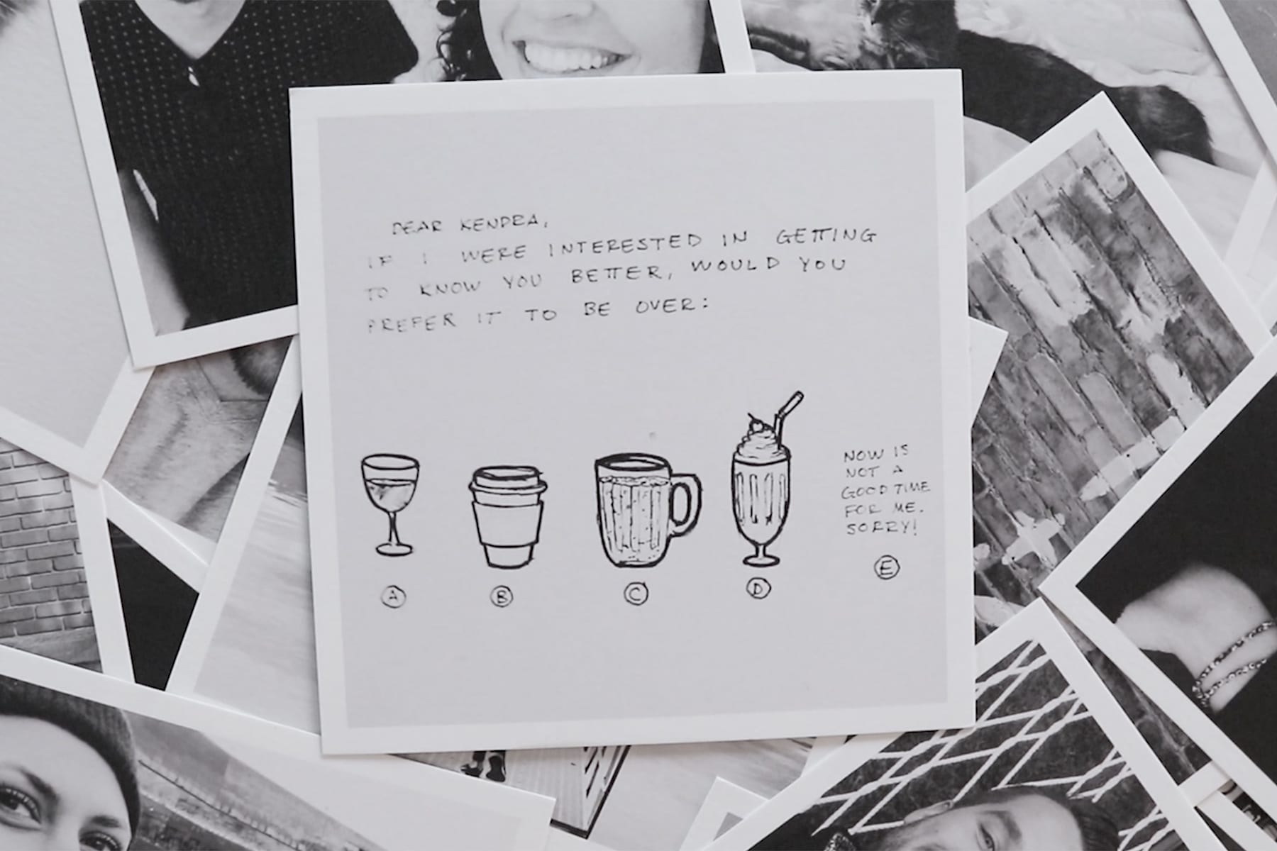 Thank God for Instagram that led two introverted and only sometimes extroverted people together. At the time I was working as an Assistant Women’s Buyer at luxury boutique in Grand Rapids. Tyler, a shoe designer, creative, and entrepreneur, was visiting the boutique one Saturday morning at the beginning of September, 2014. We were peripherally checking each other out. I remember passing him to walk down a flight of stairs and it was this chemical draw as we neared each other. Going down the stairs, with my back to him, I could feel his presence; I knew he could feel mine. Later that day, he followed me on Instagram. A few weeks later, he sent me a photo on Instagram messenger. It was a multiple-choice question written and drawn out saying, “If I wanted to get to know you better, would you prefer it to be over…”