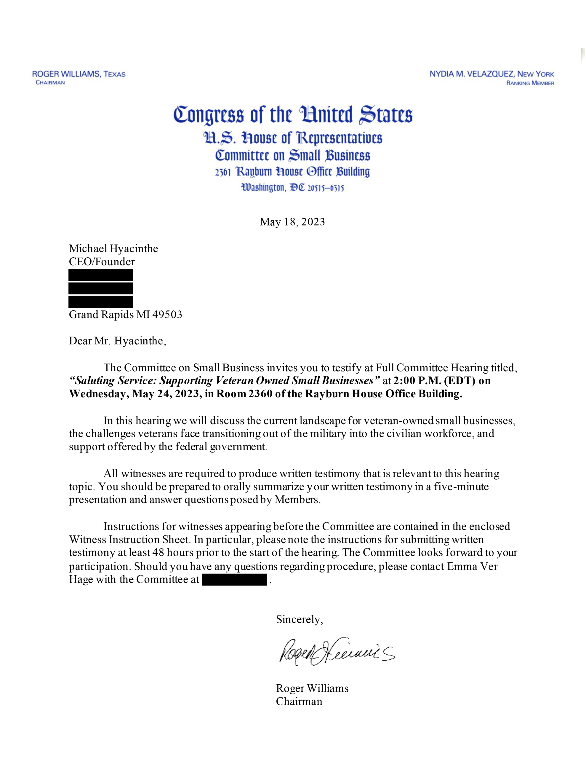HAS HEART’s U.S. Navy veteran Co-Founder, Michael Hyacinthe, was asked to share his story of service and entrepreneurial experience with the U.S. House of Representative