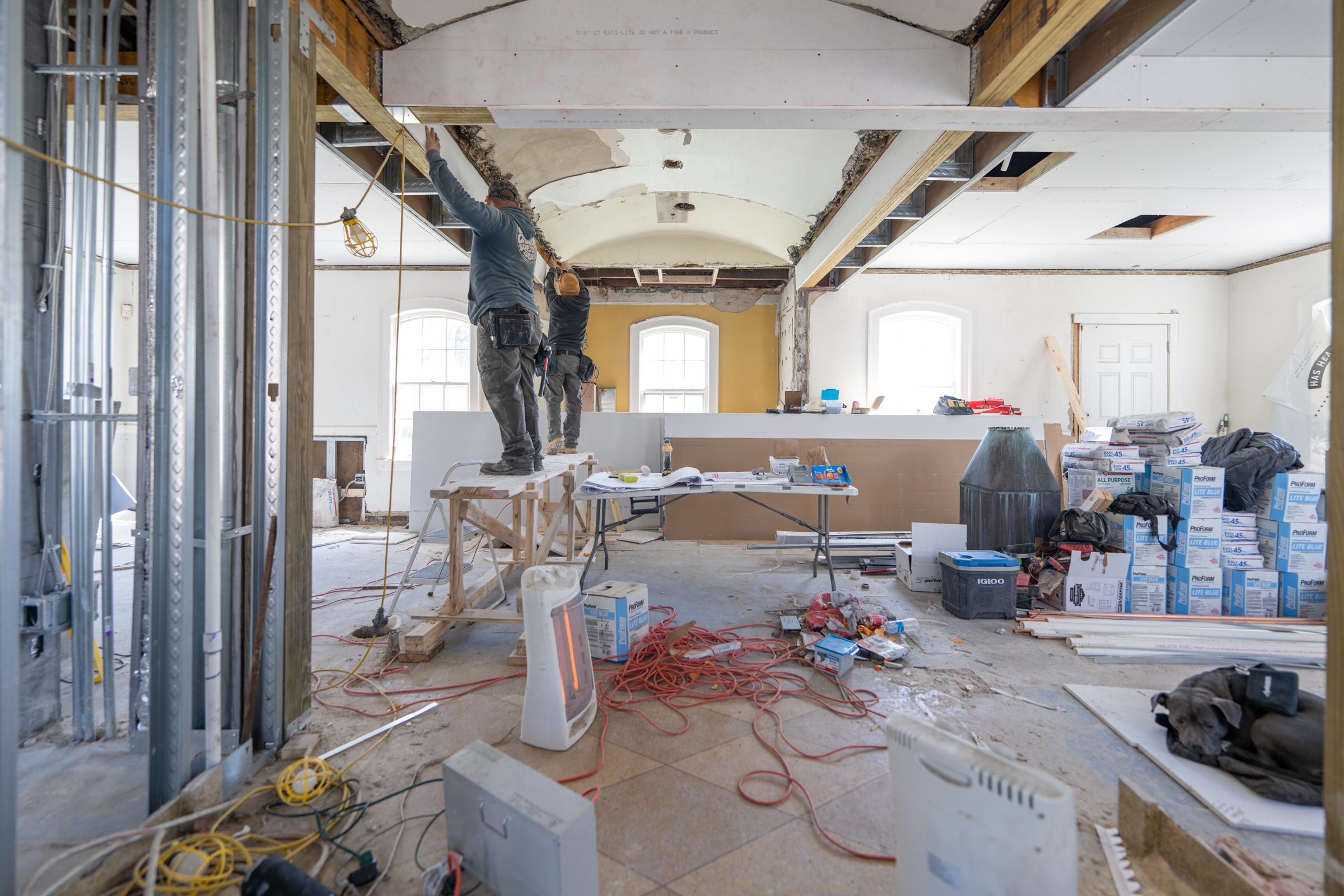 The plumbing, electrical, and HVAC systems have all been upgraded and replaced as the drywall starts to be applied inside the HAS HEART Coffee Shop.