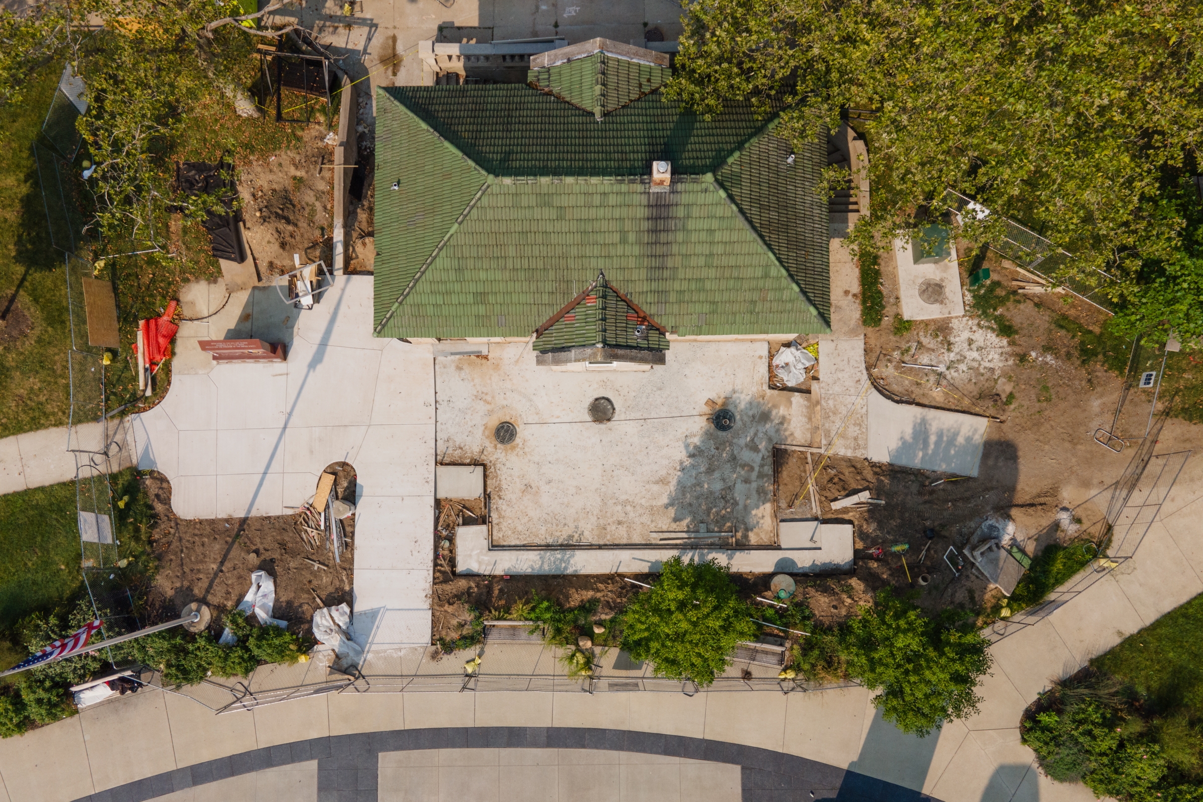 The drywall, mudding, and bar build-out starts inside while the outdoor patio work begins at the HAS HEART Coffee Shop.