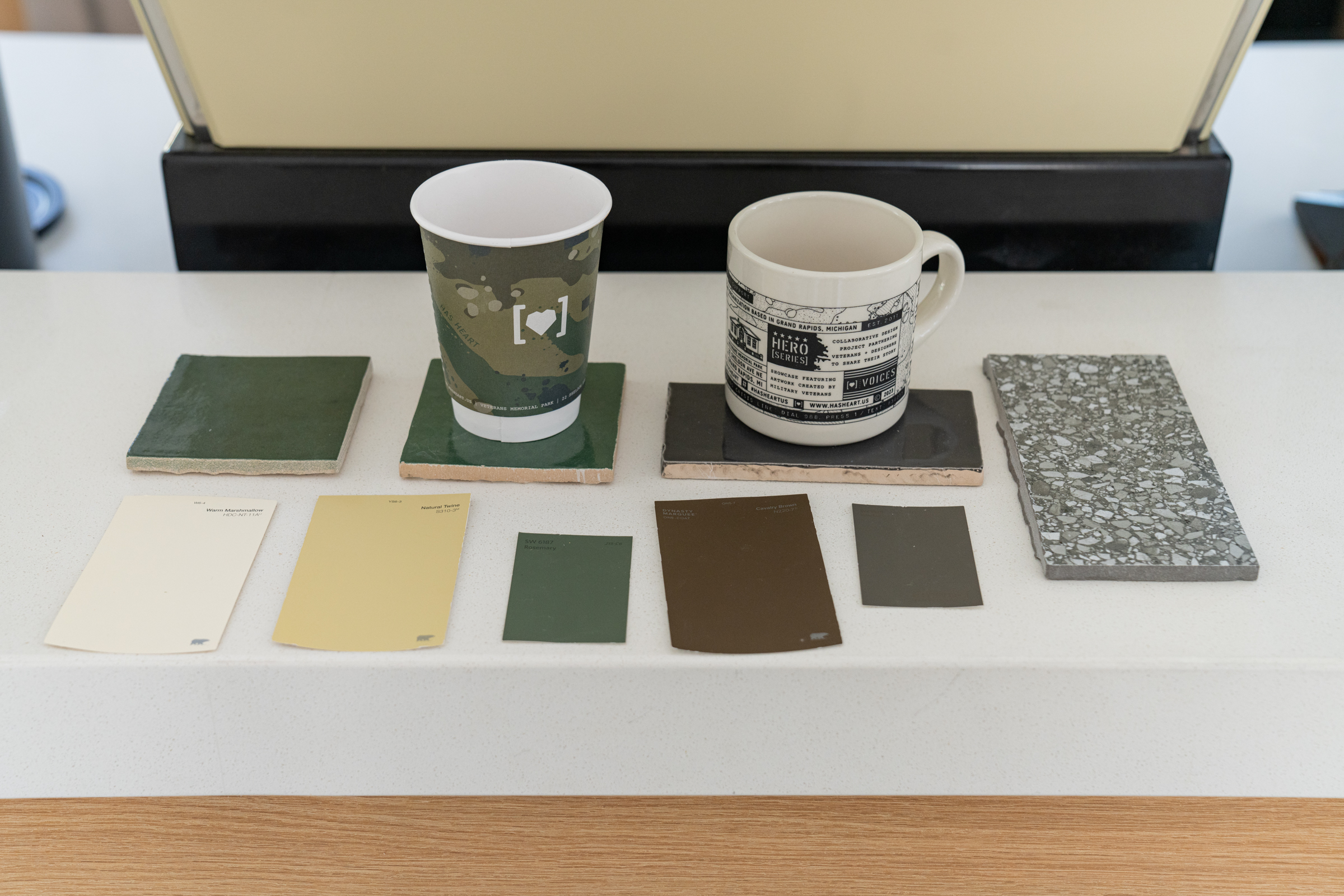 While there are a lot more updates and detail work we COULD show you, we’d rather wait a little longer for you to experience them all yourself once we’re operational. Until then, here’s a little teaser of our custom-printed coffee mugs and to-go cups that will be the reference point for all the other details and decore to fill the space around them.
