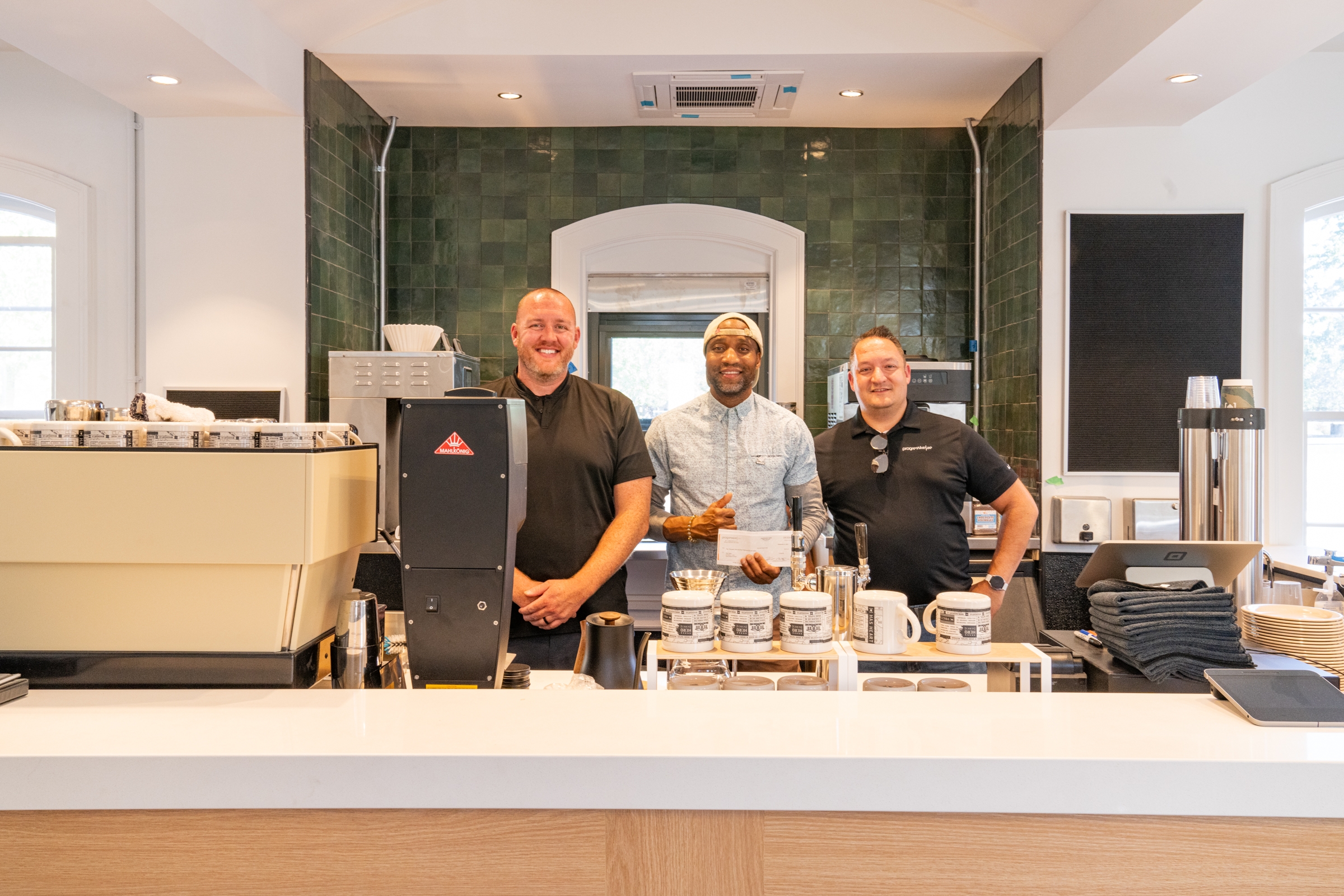 In addition to the decal display built by Mathile Design Co. (who helped bring our shadow box table concept to life, as seen in Update 04), we also had the pleasure of welcoming Progressive AE into the shop for not only a preview cup of coffee but to also receive a generous donation from their annual employee golf outing. We were honored to be their local organization of choice this year.