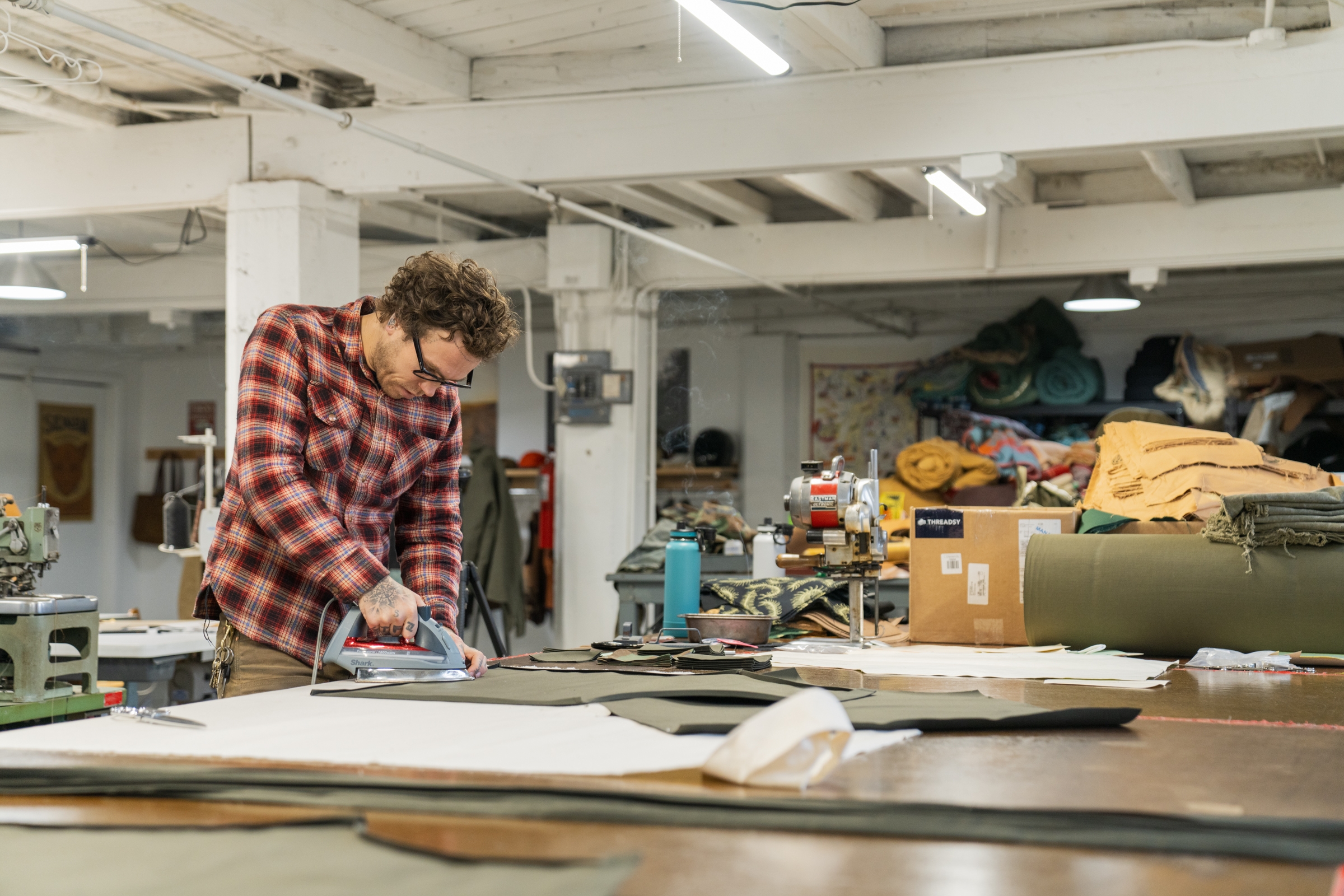 Another handcrafted touch to the Coffee Shop will be the barista aprons made by Rusty from Sidnaw Clothing at his workshop. Using deadstock waxed canvas and pieces from the same military uniforms used in bench cushions, we’re looking forward to having these functional aprons look better with age and wear for years to come.
