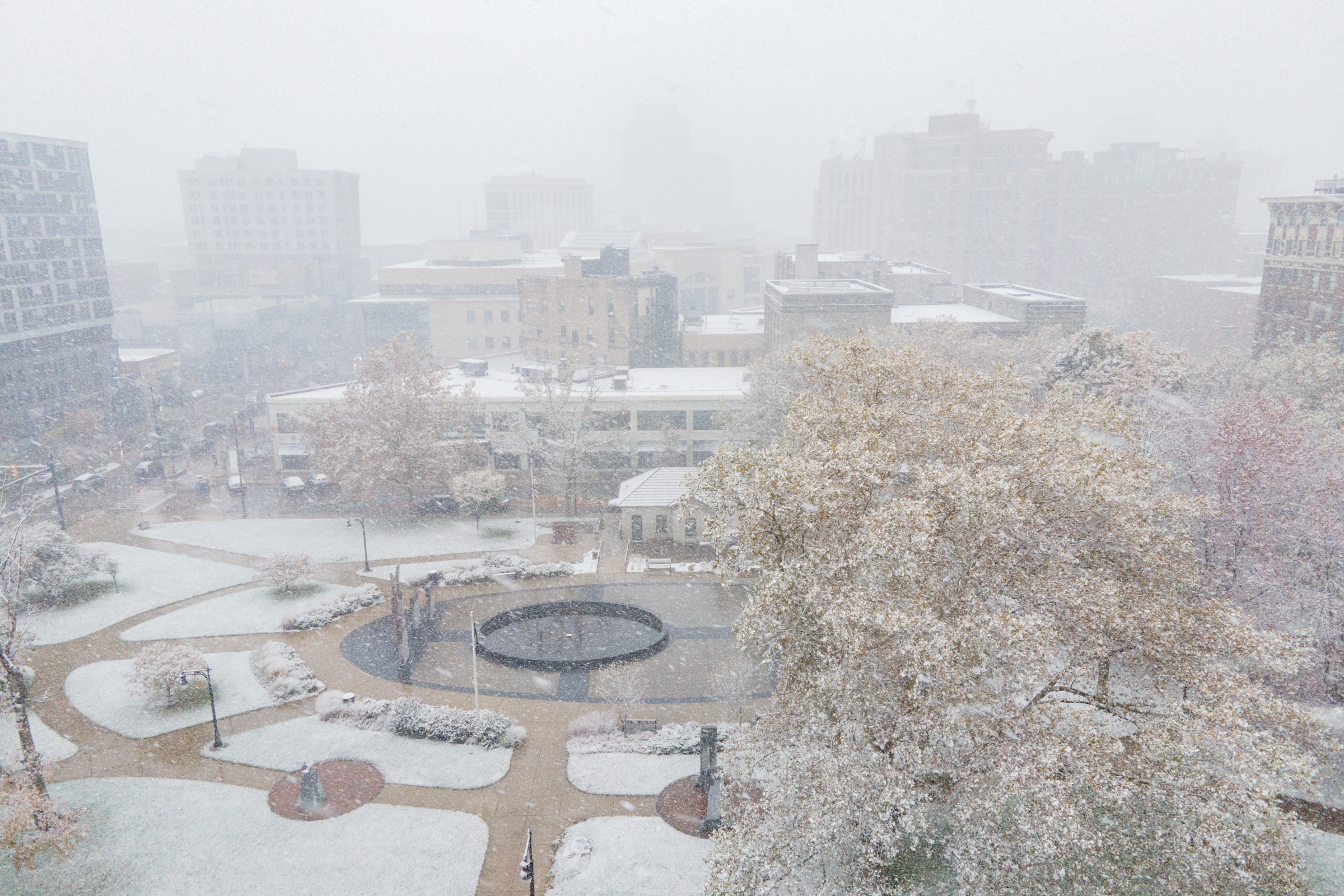 While an unusual Halloween snowstorm was blanketing downtown Grand Rapids, inside the Coffee Shop was cozy and crazy with pictures getting hung, supplies being organized, and merchandised getting displayed.