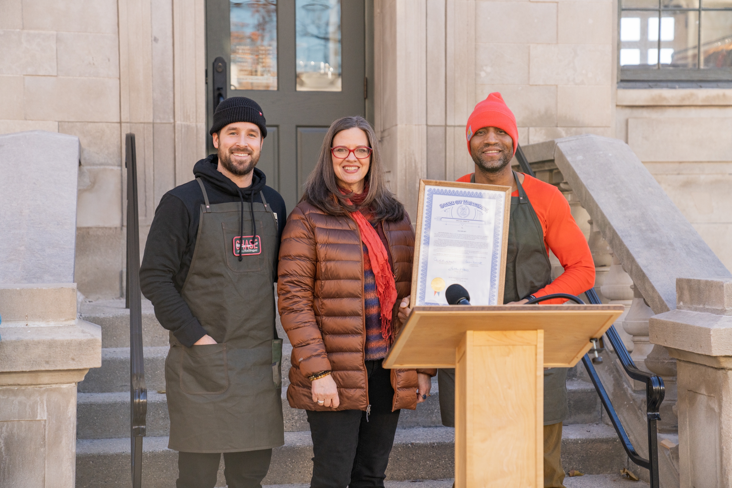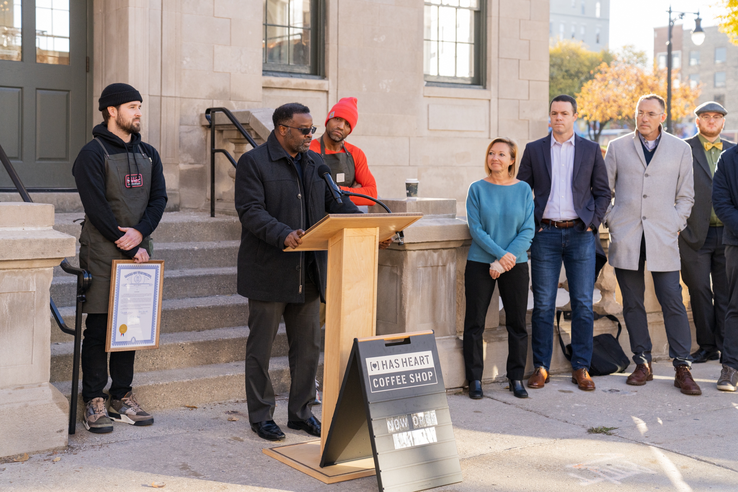 The ribbon-cutting ceremony included words from Richard App, the City’s retail, retention & attraction specialist, Mayor Rosalynn Bliss, City Manager Mark Washington, president & CEO of Downtown Grand Rapids Inc., Tim Kelly, Grand Rapids Parks and Recreation director David Marquardt, and Rep. Carol Glanville who presented HAS HEART’s co-founders, Michael and Tyler a legislative proclamation.