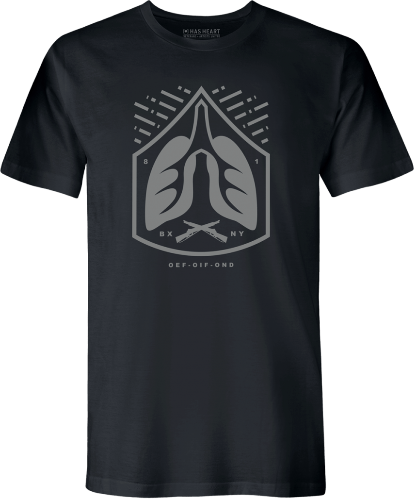 Gonzo’s design symbolizes the “invisible” wounds to his lungs he sustained while deployed and living near burn pits, something he and countless other Veterans suffer from. After eight years of service, he returned home to New York City. There, his other invisible wounds began to surface. After spending month after month of battling homelessness and struggling to reintegrate into a civilian lifestyle, he discovered that many other Veterans shared his same struggle. This discovery motivated him to start his own organization, Devil Dog USA, to aid his fellow Veterans heal and live.
