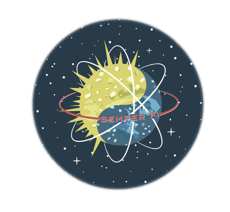 His design represents that we cannot truly appreciate the good times without also having lived through the bad times, and vice versa. The sun and the moon is a reinterpretation of yin and yang, how opposite forces can be complementary of each other. Ryan’s mission is to encourage civilians to get to know Veterans better, and vice versa. Through mutual respect and meaningful conversation, both sides can better support each other and live in harmony. In this way, the Latin motto “Semper Fi,” which translates to “Always faithful,” can represent a better balanced world for both Veterans and civilians to thrive in together.