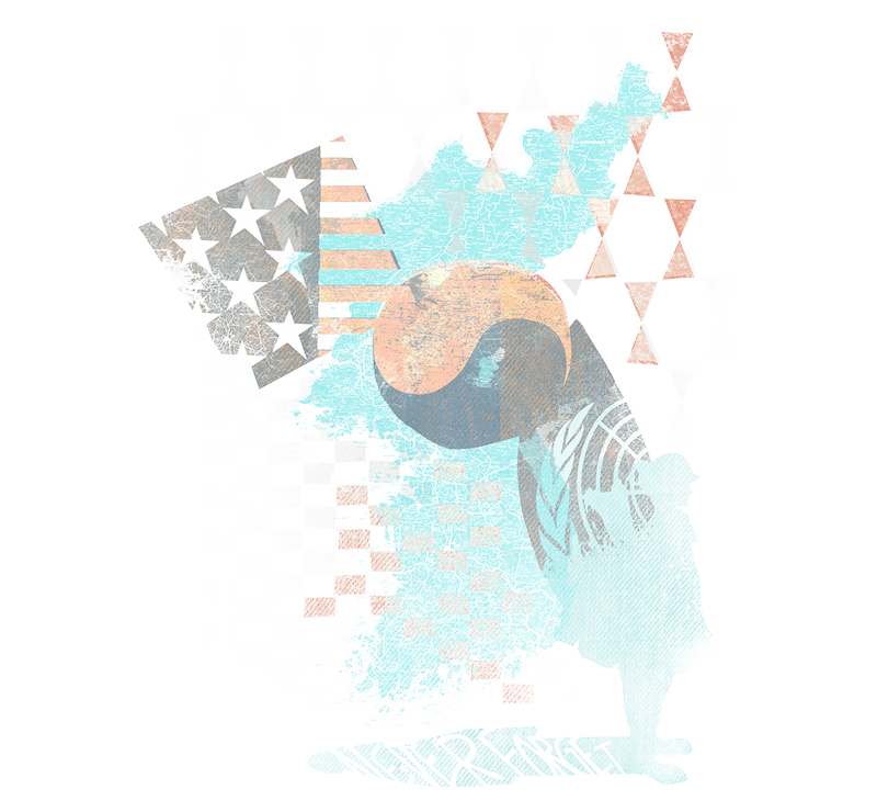 His mid-century modern-inspired design represents his faded memories of the Korean conflict, painted with contemporary nuances of the emerging modernism of the time. The unification of South Korea, the United States, and efforts of the United Nations are shown in harmony to demonstrate the need of collaboration in order to achieve a goal greater than oneself. Together, we are stronger, and together we will never forget those who have sacrificed for our freedoms.