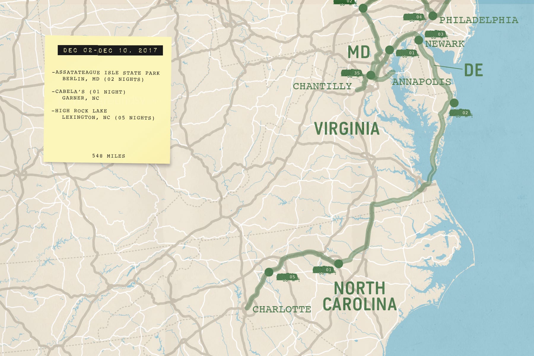 To break up the long, eight-hour drive from Assateague National Seashore to Charlotte, we spent a night in Cabela’s parking lot in Garner. The next morning while we were getting ready to drive the last three hours to Charlotte, we got a knock on our door.