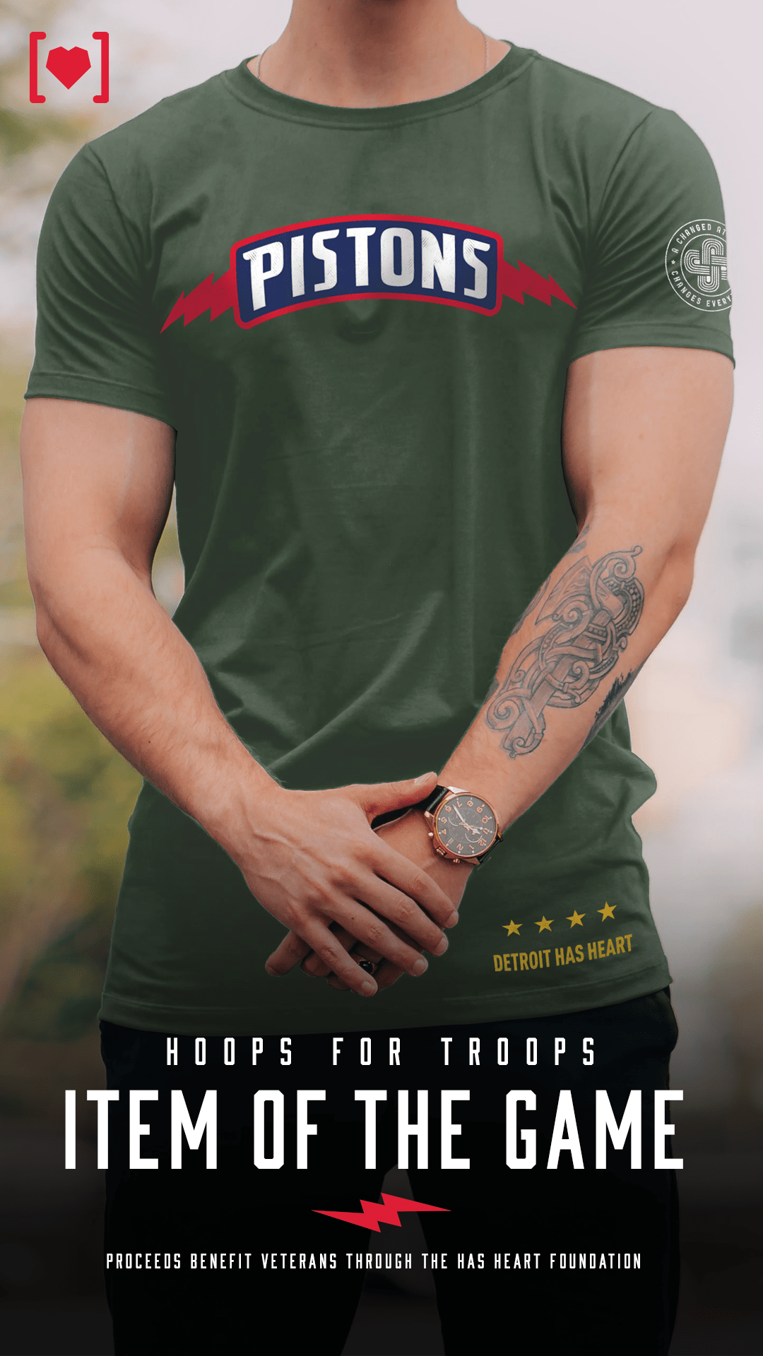 On Monday, May 11th this collaborative design will be the Pistons’ Hoops For Troops “Item of the Game” exclusively available on www.pistons313shop.com – order yours today before this limited-run shirt is sold out.