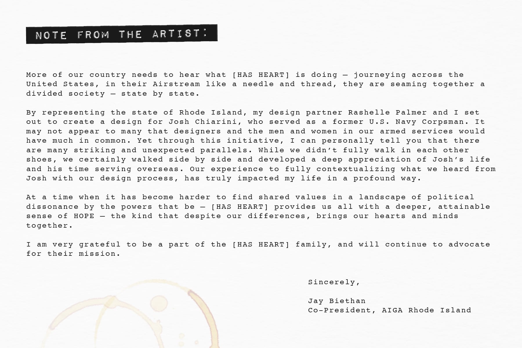 When he agreed to be partnered with two graphic designers for the Rhode Island project of the 50 States: Veterans + Artists United tour, Josh would soon learn how his story presented visually could reach and help even more people.