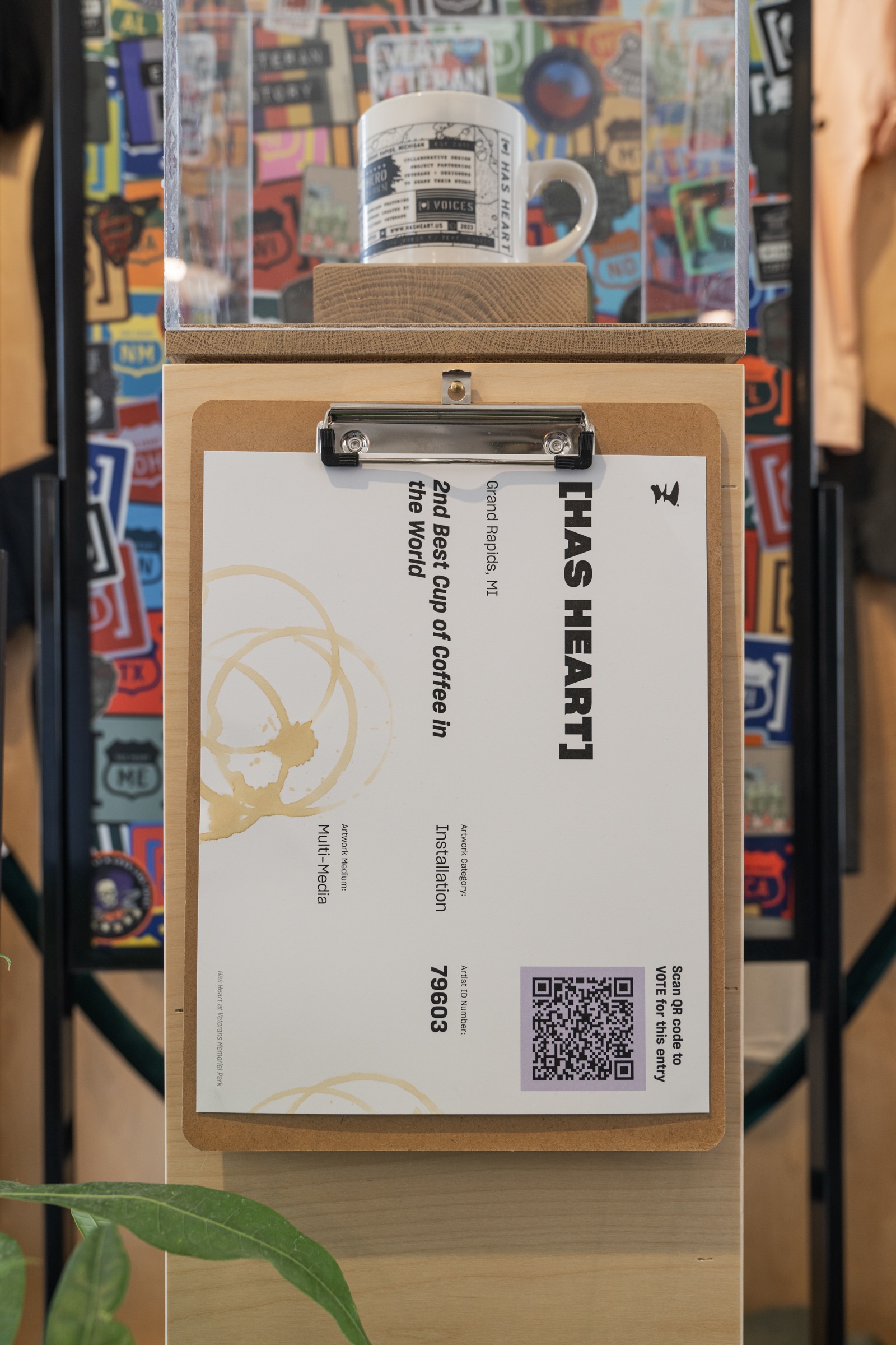 Thanks to the platform ArtPrize created for the community to come together around art, the [HAS HEART] Coffee Shop is now open daily to continually build a supportive community around our creative outlet for veterans’ stories to be heard, seen, and experienced. All of these impactful designs from the past 12 years are here because of this crazy idea called ArtPrize. Your support has enabled us to open, and now, your vote will help keep our doors open to all.