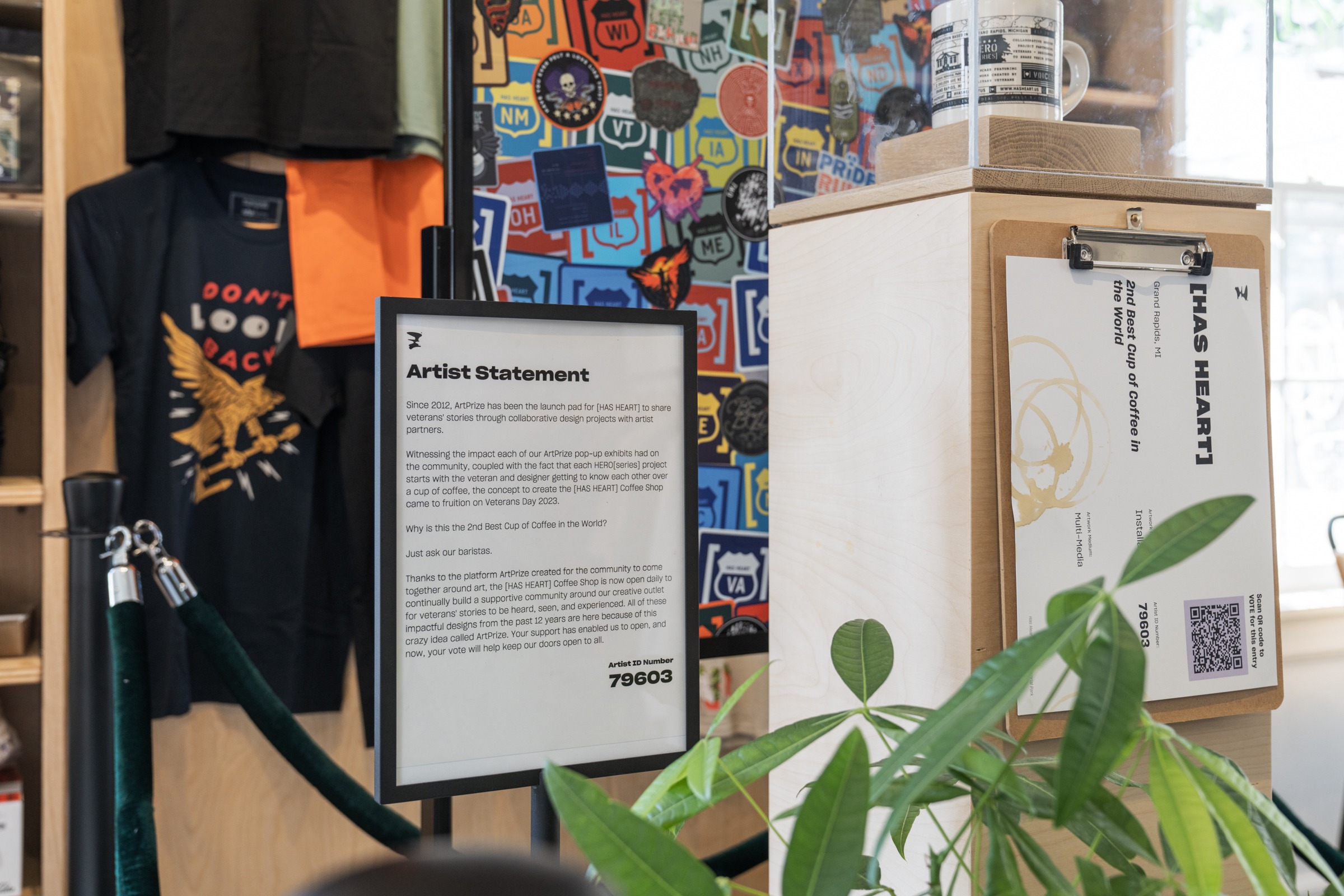 Witnessing the impact each of our ArtPrize pop-up exhibits had on the community, coupled with the fact that each HERO[series] project starts with the veteran and designer getting to know each other over a cup of coffee, the concept to create the [HAS HEART] Coffee Shop came to fruition on Veterans Day 2023.